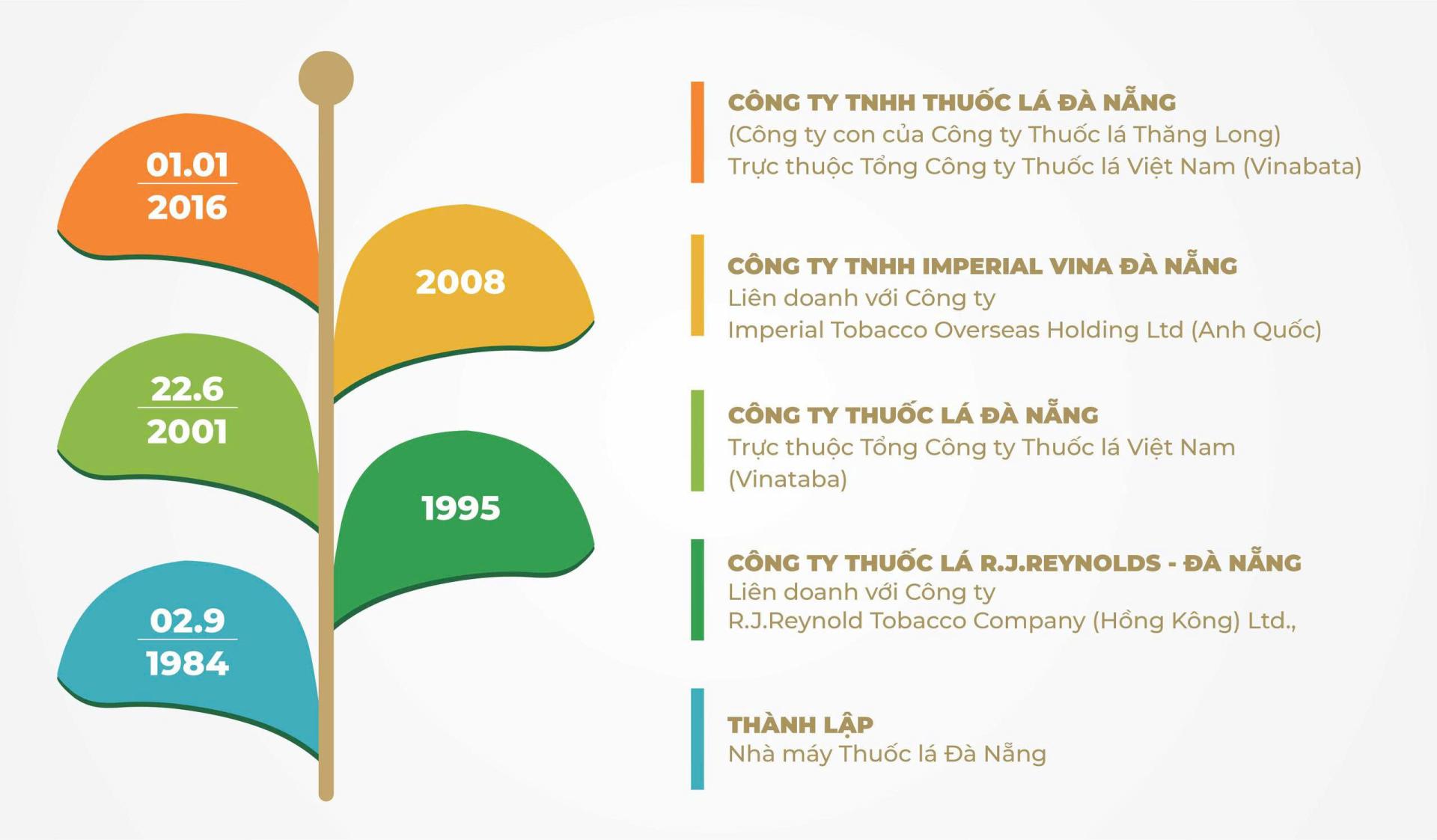 Ngày 02/09/1984 , Nhà máy Thuốc lá Đà Nẵng, đơn vị tiên phong của ngành Công nghiệp Thuốc lá tại Miền Trung được thành lập và đi vào hoạt động với tổng số CBCNV là 150 người, khởi đầu cho nền công nghiệp trồng và chế biến thuốc lá tại khu vực miền trung tây nguyên. Trải qua hơn 40 năm xây dựng và phát triển, các thế hệ cán bộ, công nhân viên Công ty đã nối tiếp nhau xây dựng nên truyền thống quý báu, với những đóng góp có ý nghĩa lớn lao cho ngành Công nghiệp Thuốc lá Việt Nam.